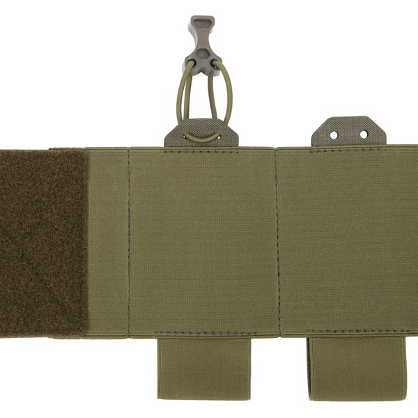 Elastisuuden idea on, että liivi puristuu kokoajan tasaisesti käyttäjän ympärille tarjoten riittävästi joustoa kaikenlaiseen taisteluakrobatiaan. Cummerbund toimii samaan aikaan Ten Speed -tyylisenä lipastaskuna sillä kahden elastisen kankaan välit on ommeltu yhteensä kolmeksi lipastaskuksi per puoli. Lisäksi ulkopinnassa on jokaisen taskun kohdalla 1 × 2 PALS-matriisi. Kätevä esimerkiksi pistoolin lipastaskuille! Ovelasti matriisien väli on yhden PALS-kujan mittainen, joten taskujen yli saa asennettua yleistaskuja. Huomioi kuitenkin, että taskun kiinnittäminen useampaan kuin yhteen matriisiin vaikuttaa cummerbundin venyvyyteen!